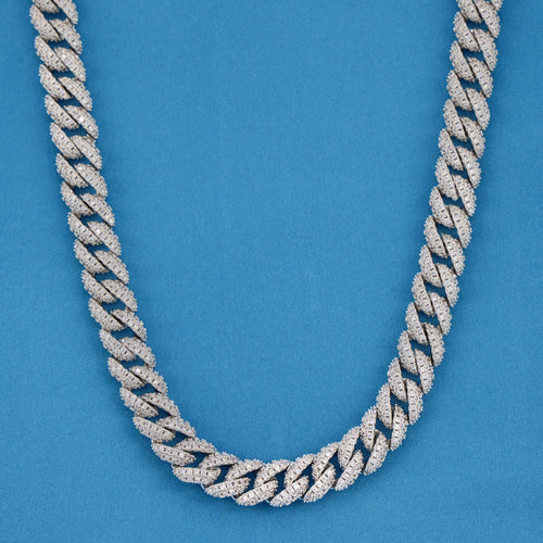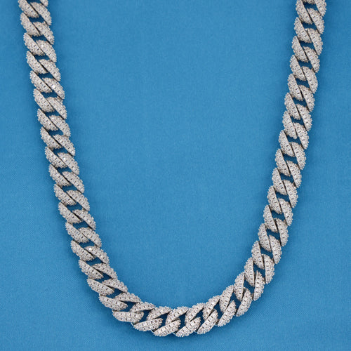 13mm Diamond Prong Link Cuban Chain - 925 Silver -